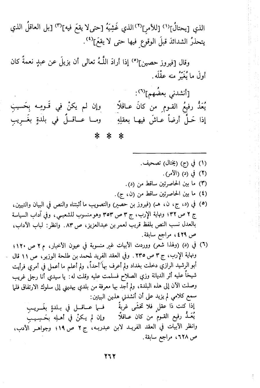 (إِذا حل أَرضًا عَاشَ فِيهَا بعقله ... وَمَا عَاقل فِي بَلْدَة بغريب)