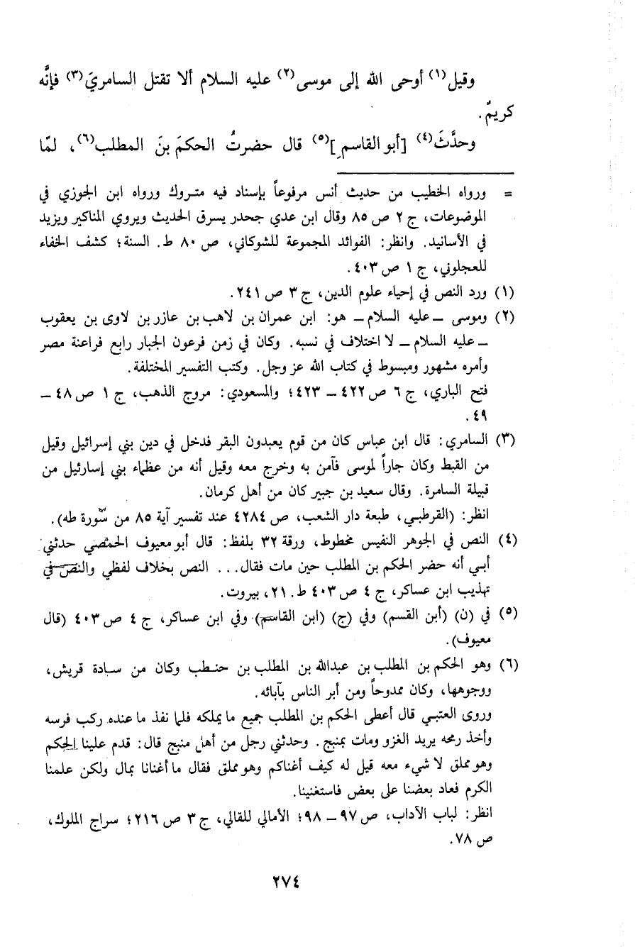 وَقيل اوحى الله إِلَى مُوسَى عَلَيْهِ السَّلَام أَلا تقتل السامري فَإِنَّهُ كريم