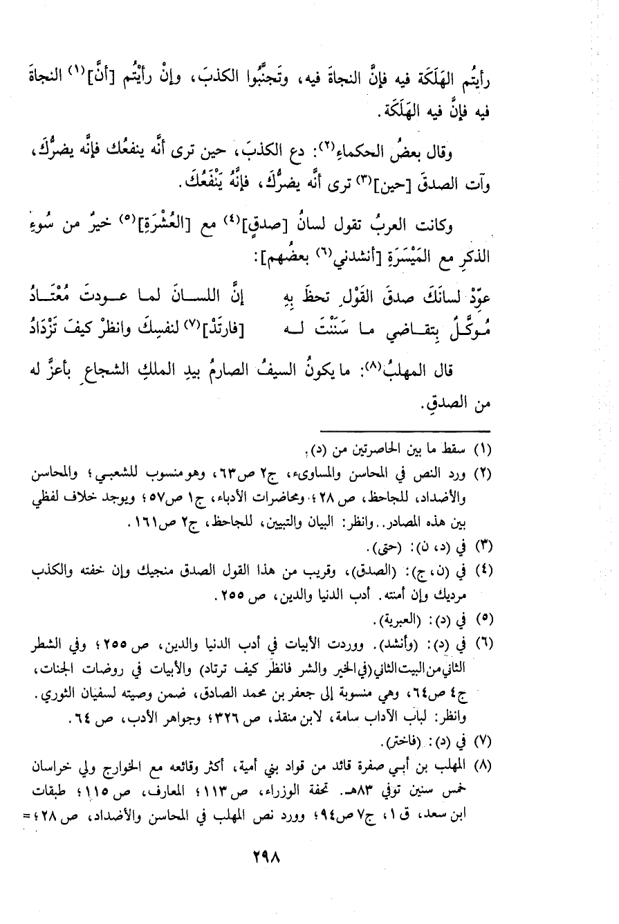 وَقَالَ بعض الْحُكَمَاء دع الْكَذِب حِين ترى أَنه ينفعك فَإِنَّهُ يَضرك وات الصدْق حِين ترى أَنه يَضرك فَإِنَّهُ ينفعك