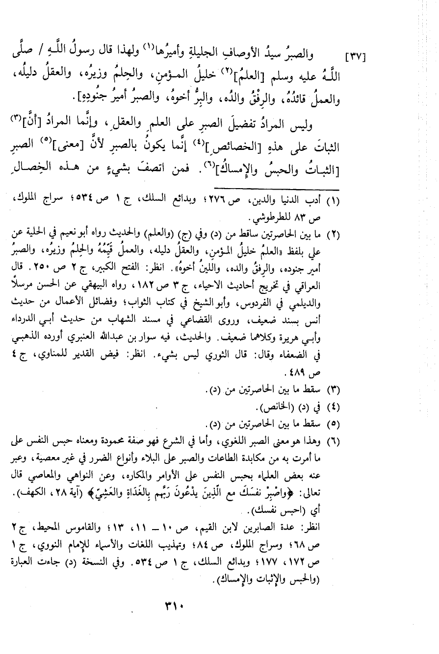 وَلَيْسَ المُرَاد تَفْضِيل الصَّبْر على الْعلم وَالْعقل وَإِنَّمَا المُرَاد أَن الثَّبَات على هَذِه الخصائص إِنَّمَا يكون بِالصبرِ لِأَن معنى الصَّبْر الثَّبَات وَالْحَبْس والإمساك فَمن اتّصف بِشَيْء من هَذِه الْخِصَال
