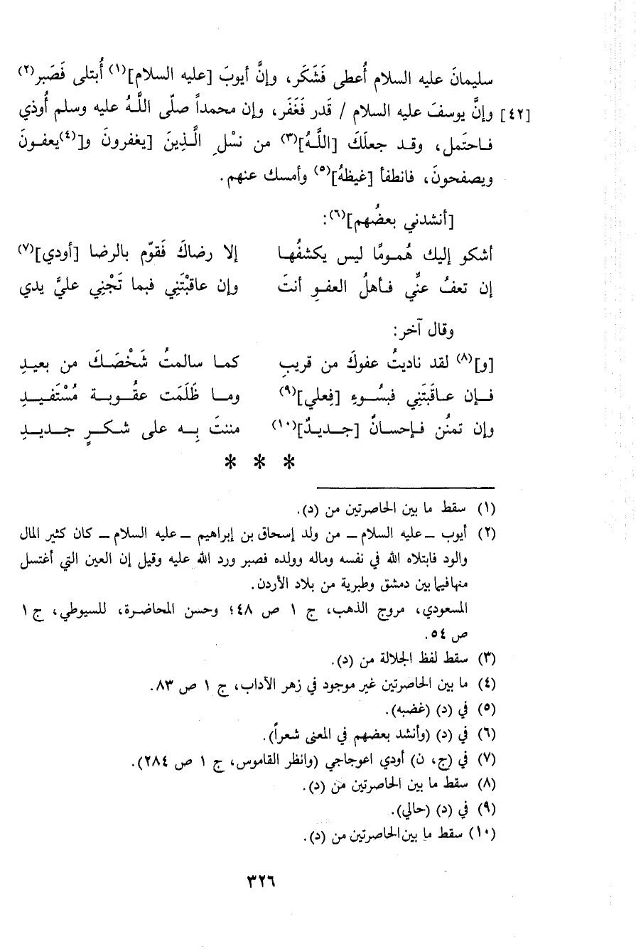 (فَإِن عاقبتني فبسوء فعلي ... وَمَا ظلمت عُقُوبَة مستفيد)
