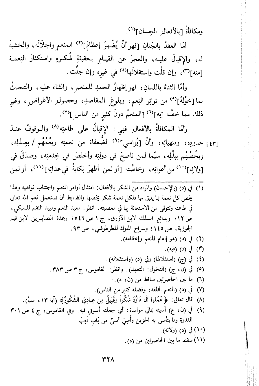 واما الْمُكَافَأَة بالأفعال فَهِيَ الإقبال على طَاعَته وَالْوُقُوف عِنْد حُدُوده ومنهياته وان يواسي الضُّعَفَاء من نعْمَته ويعمهم بعدله ويخصهم ببذله سِيمَا لمن نَاصح فِي دولته وأخلص فِي خدمته وَصدق فِي ولائه من أعوانه وخاصته أَو لمن أظهر نكاية فِي عداته أَو لمن