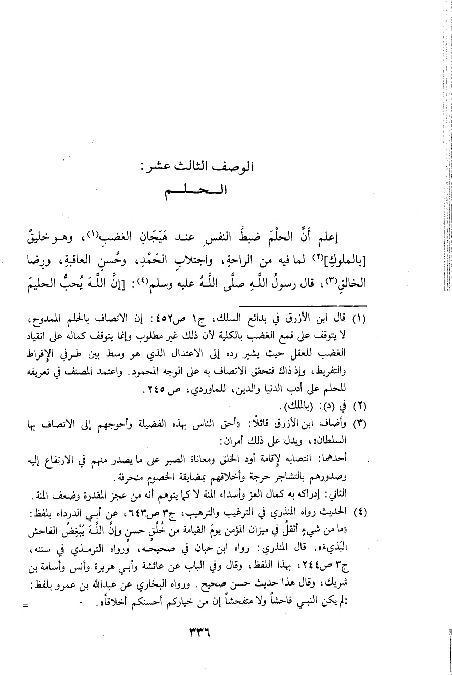 إعلم أَن الْحلم ضبط النَّفس عِنْد هيجان الْغَضَب وَهُوَ خليق بالملوك لما فِيهِ من الرَّاحَة واجتلاب الْحَمد وَحسن الْعَاقِبَة ورضا الْخَالِق قَالَ رَسُول الله صلى الله عَلَيْهِ وَسلم إِن الله يحب الْحَلِيم