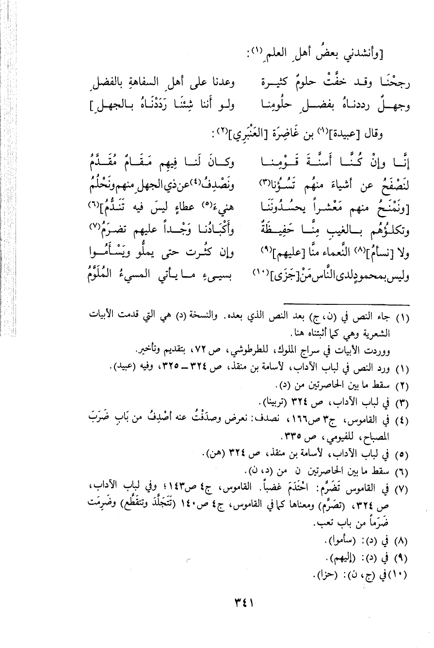 (لنصفح عَن أَشْيَاء مِنْهُم تسؤنا ... ونصدف عَن ذِي الْجَهْل مِنْهُم ونحلم)