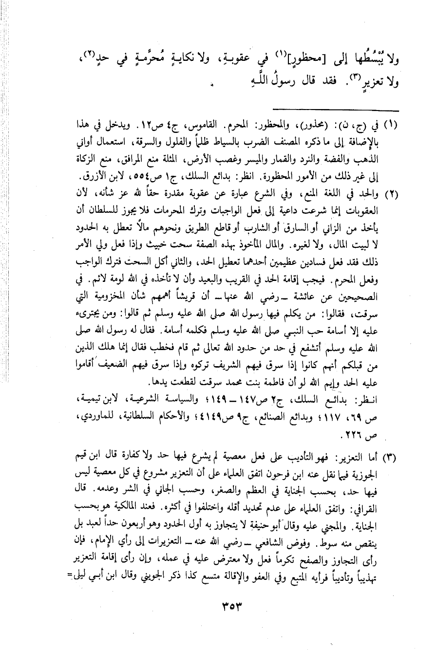 وَلَا يبسطها إِلَى مَحْظُور فِي عُقُوبَة وَلَا نكاية مُحرمَة فِي حد وَلَا تَعْزِير فقد قَالَ رَسُول الله