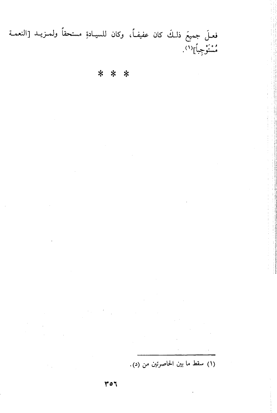 فعل جَمِيع ذَلِك كَانَ عفيفا وَكَانَ للسيادة مُسْتَحقّا ولمزيد النِّعْمَة مستوجبا