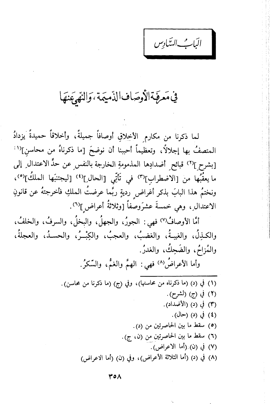 الْبَاب السَّادِس فِي معرفَة الْأَوْصَاف الذميمة وَالنَّهْي عَنْهَا