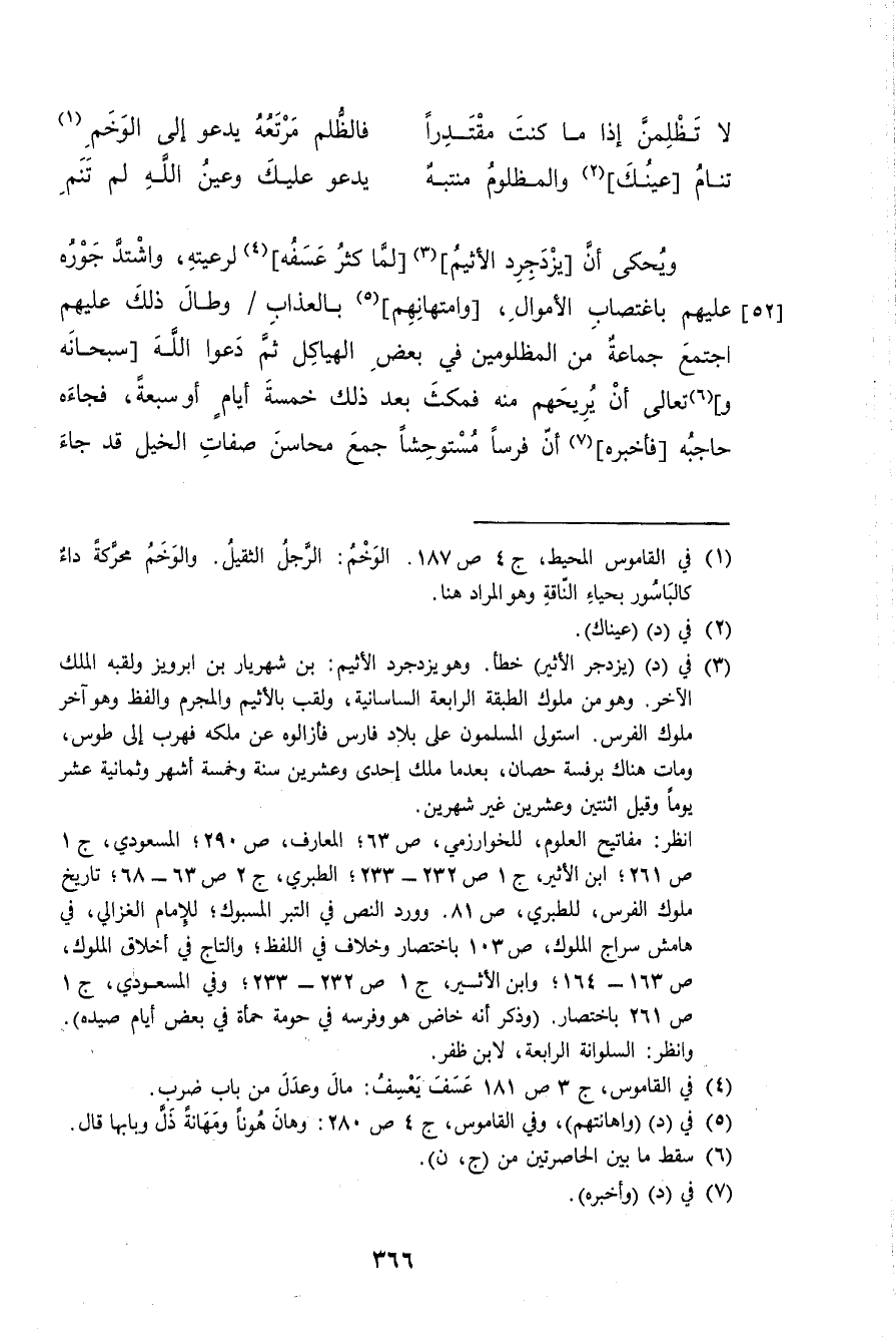 (لَا تظلمن إِذا مَا كنت مقتدرا ... فالظلم مرتعة يَدْعُو إِلَى الوخم)