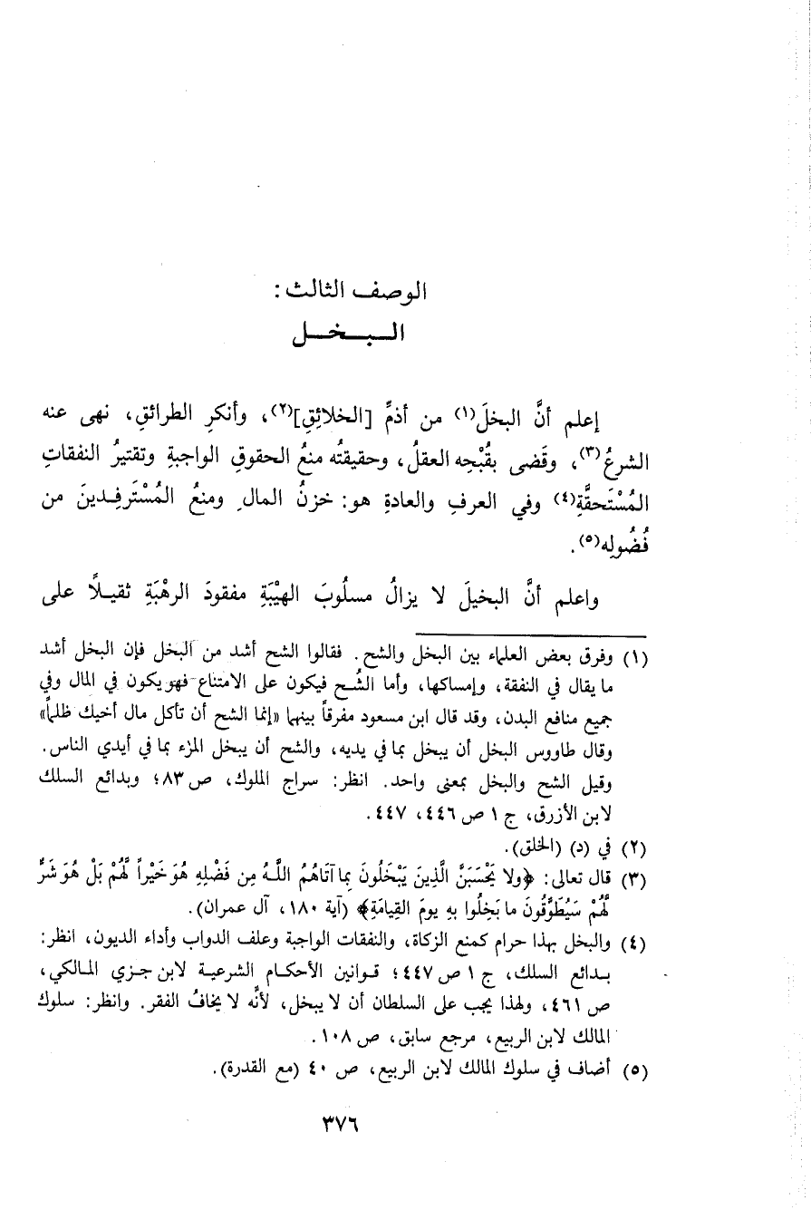 إعلم أَن الْبُخْل من أَذمّ الْخَلَائق وَأنكر الطرائق نهى عَنهُ الشَّرْع وَقضى بقبحه الْعقل وَحَقِيقَته منع الْحُقُوق الْوَاجِبَة وتقتير النَّفَقَات الْمُسْتَحقَّة وَفِي الْعرف وَالْعَادَة هُوَ خزن المَال وَمنع المسترفدين من فضوله