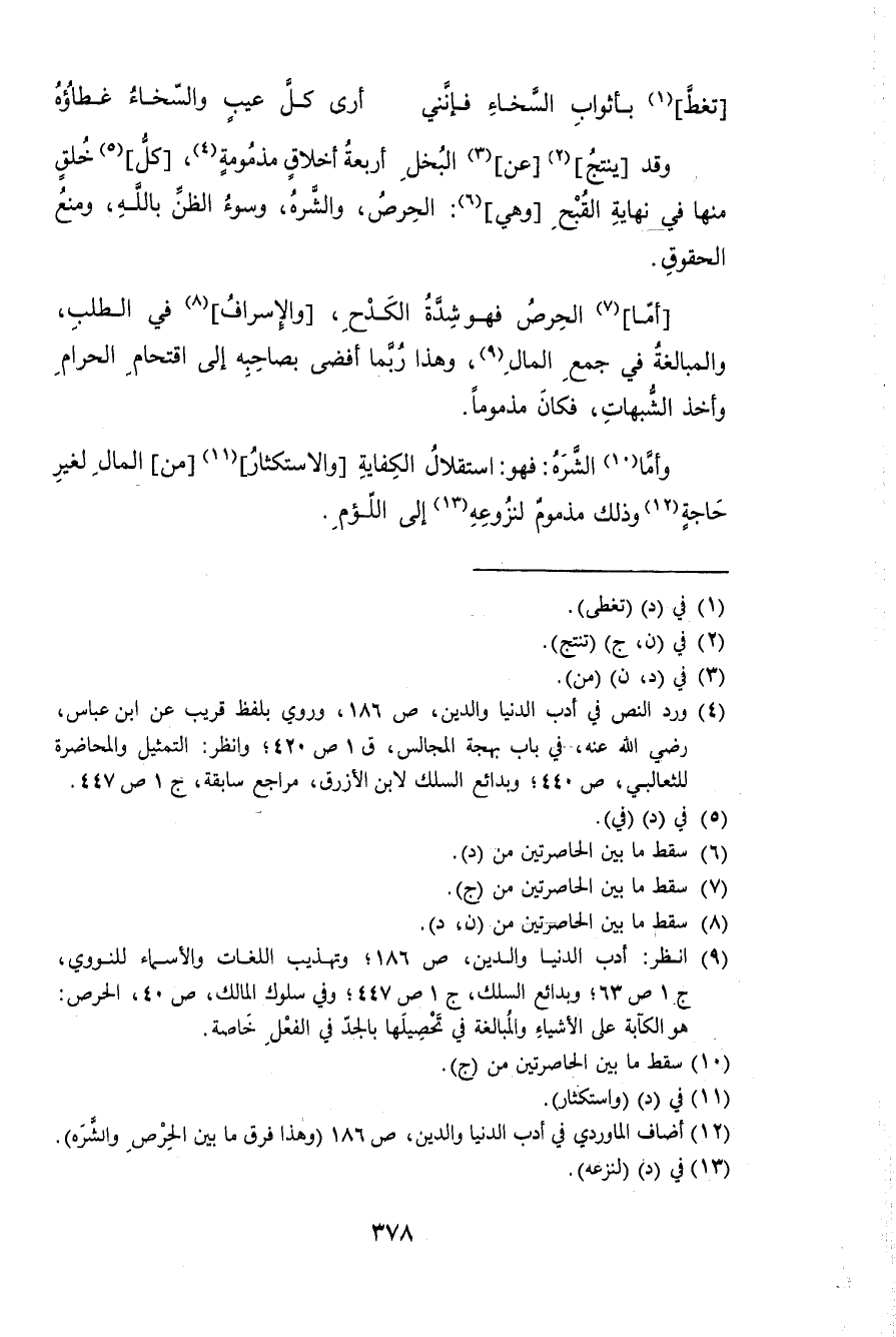 وَقد ينْتج عَن الْبُخْل أَرْبَعَة أَخْلَاق مذمومة كل خلق مِنْهَا فِي نِهَايَة الْقبْح وَهِي الْحِرْص والشره وَسُوء الظَّن بِاللَّه وَمنع الْحُقُوق