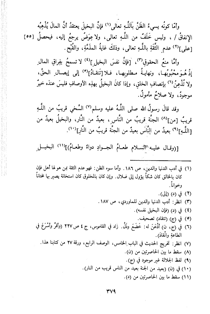 وَأما كَونه يسيء الظَّن بِاللَّه تَعَالَى فَإِن الْبَخِيل يعْتَقد أَن المَال يذهبه الْإِنْفَاق وَلَيْسَ خلف من الله تَعَالَى وَلَا عوض يرجع إِلَيْهِ فَيحصل على عدم الثِّقَة بِاللَّه تَعَالَى وَذَلِكَ غَايَة المذمة والقبح