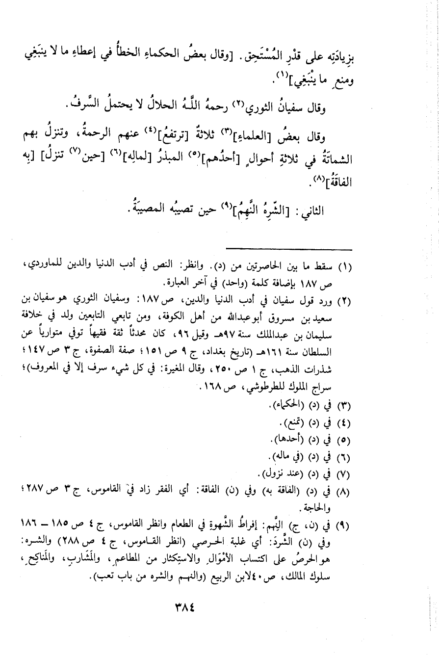 وَقَالَ سُفْيَان الثَّوْريّ رَحْمَة الله الْحَلَال لَا يحْتَمل السَّرف