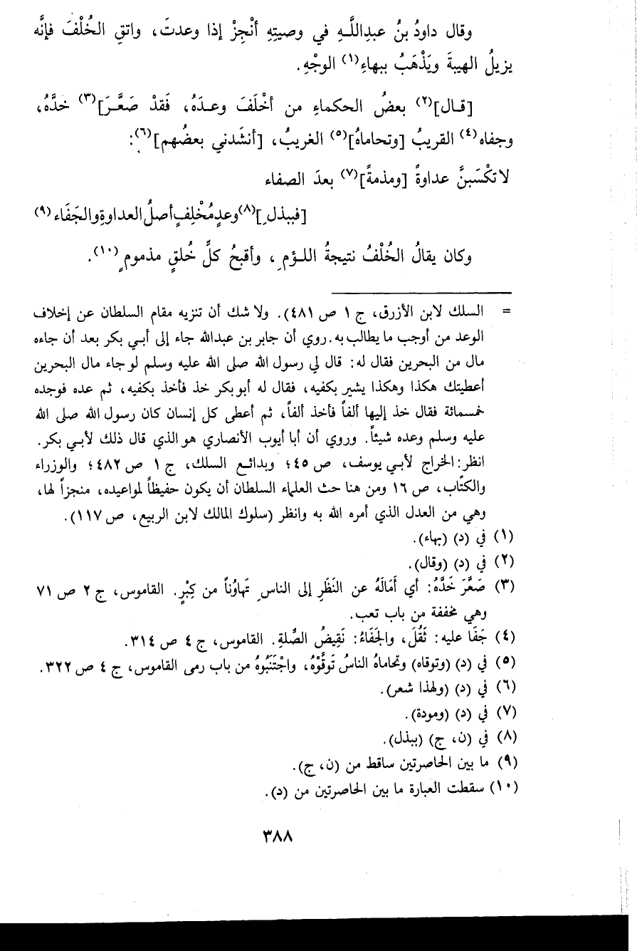 وَقَالَ دواد بن عبد الله فِي وَصِيَّة أنْجز إِذا وعدت وَاتَّقِ الْخلف فَإِنَّهُ يزِيل الهيبة وَيذْهب ببهاء الْوَجْه