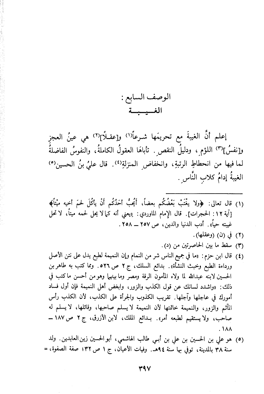 الْوَصْف السَّابِع الْغَيْبَة