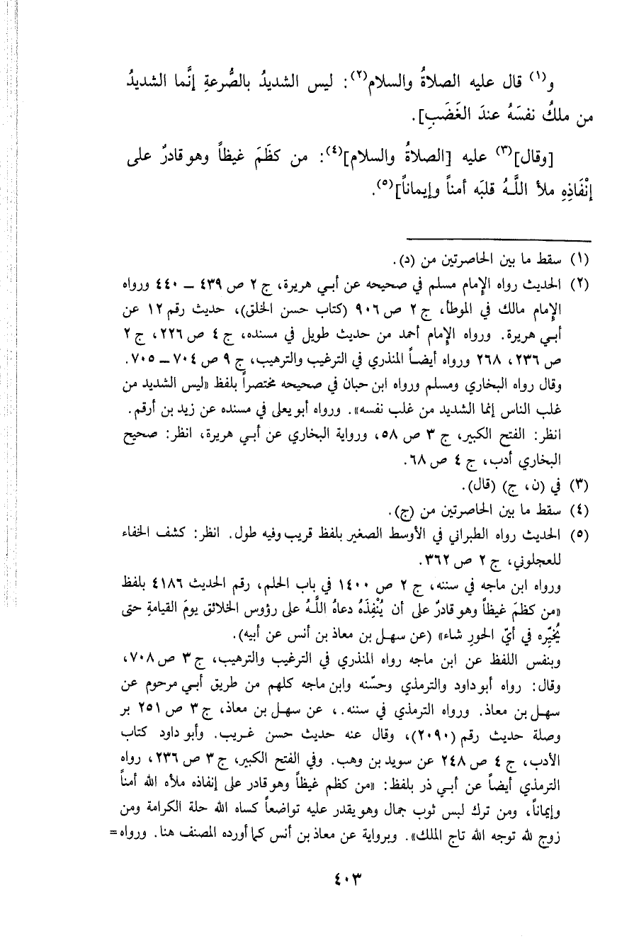 وَقَالَ عَلَيْهِ الصَّلَاة وَالسَّلَام من كظم غيظا وَهُوَ قَادر على إِنْفَاذه مَلأ الله قلبه أمنا وإيمانا
