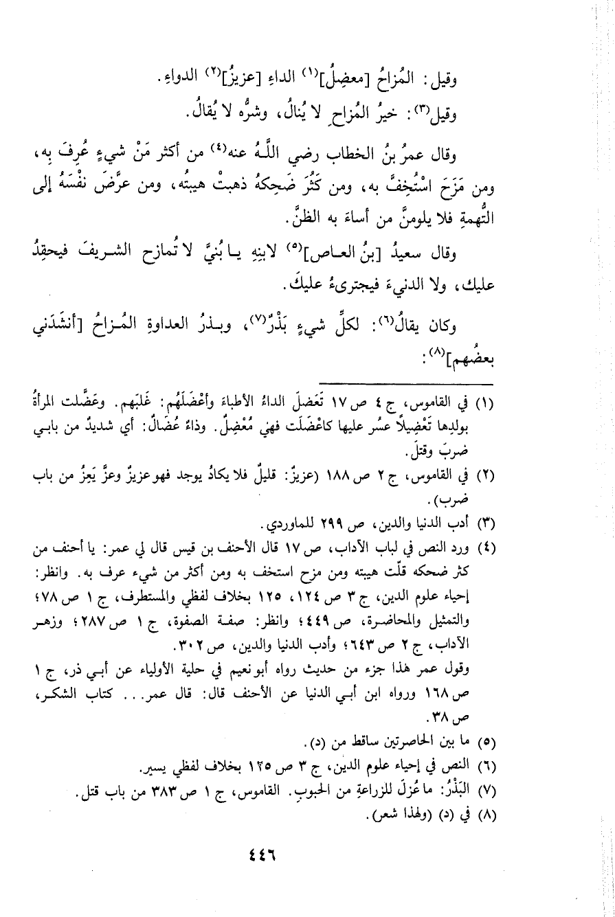 وَقيل المزاح معضل الدَّاء عَزِيز الدَّوَاء