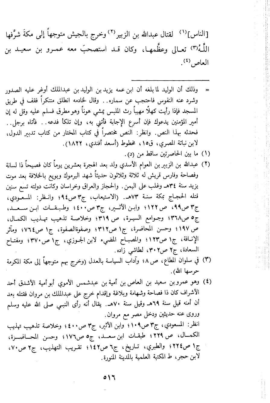 النَّاس لقِتَال عبد الله بن الزبير وَخرج بالجيش مُتَوَجها إِلَى مَكَّة شرفها الله تَعَالَى وعظمها وَكَانَ قد استصحب مَعَه عَمْرو بن سعيد بن الْعَاصِ