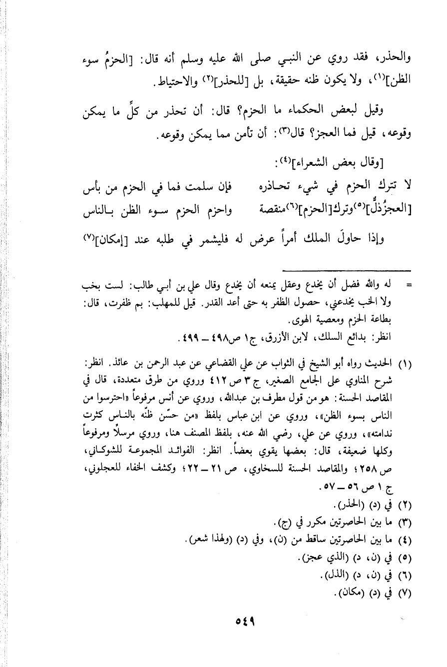 (العجزذل وَترك الحزم منقصه ... واحزم الحزم سوء الظَّن بِالنَّاسِ)