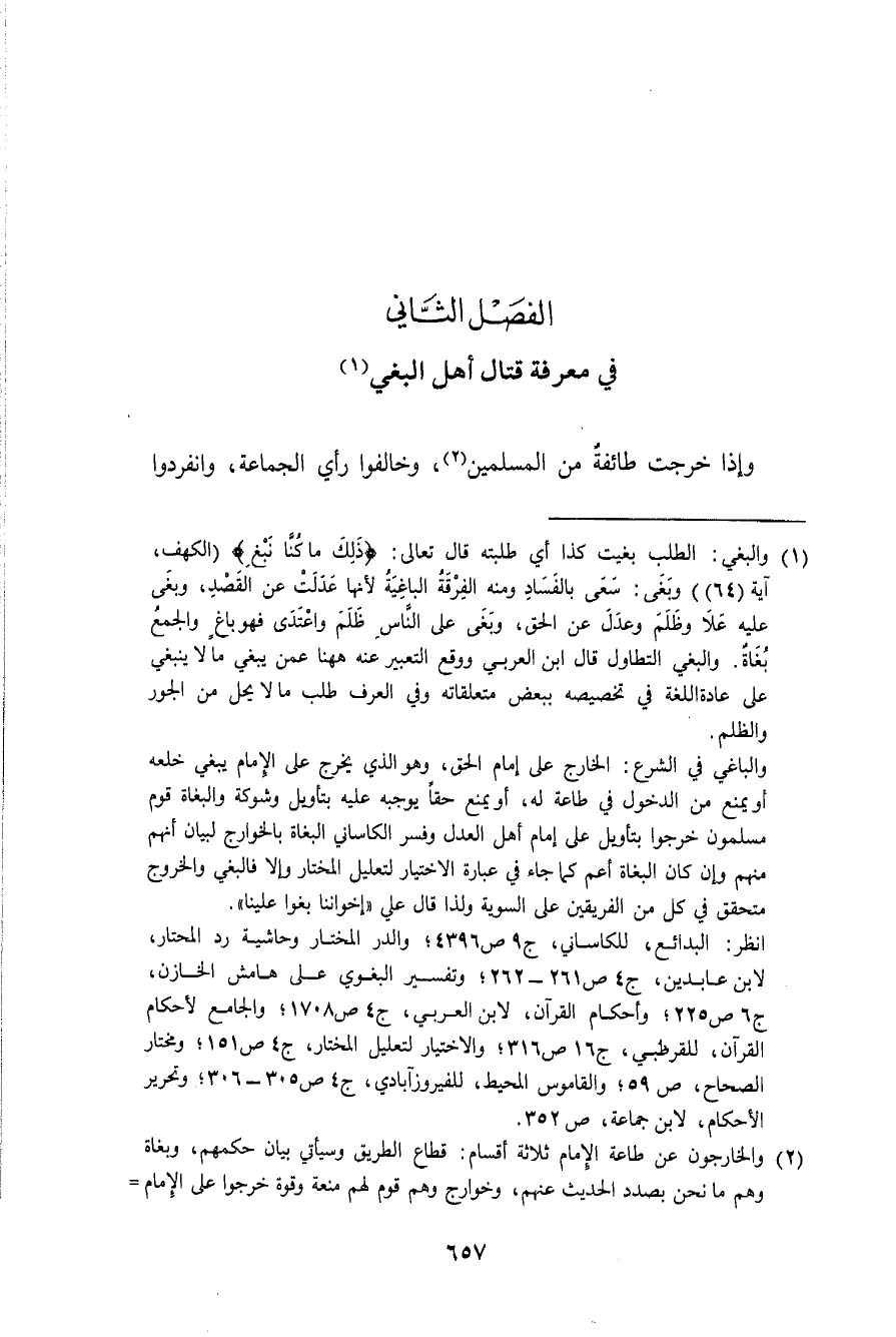 الْفَصْل الثَّانِي فِي معرفَة قتال أهل الْبَغي