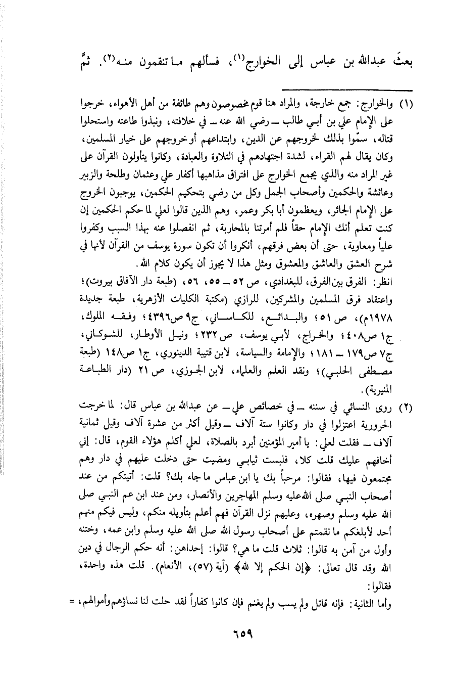 بعث عبد الله بن عَبَّاس إِلَى الْخَوَارِج فَسَأَلَهُمْ مَا تَنْقِمُونَ مِنْهُ ثمَّ