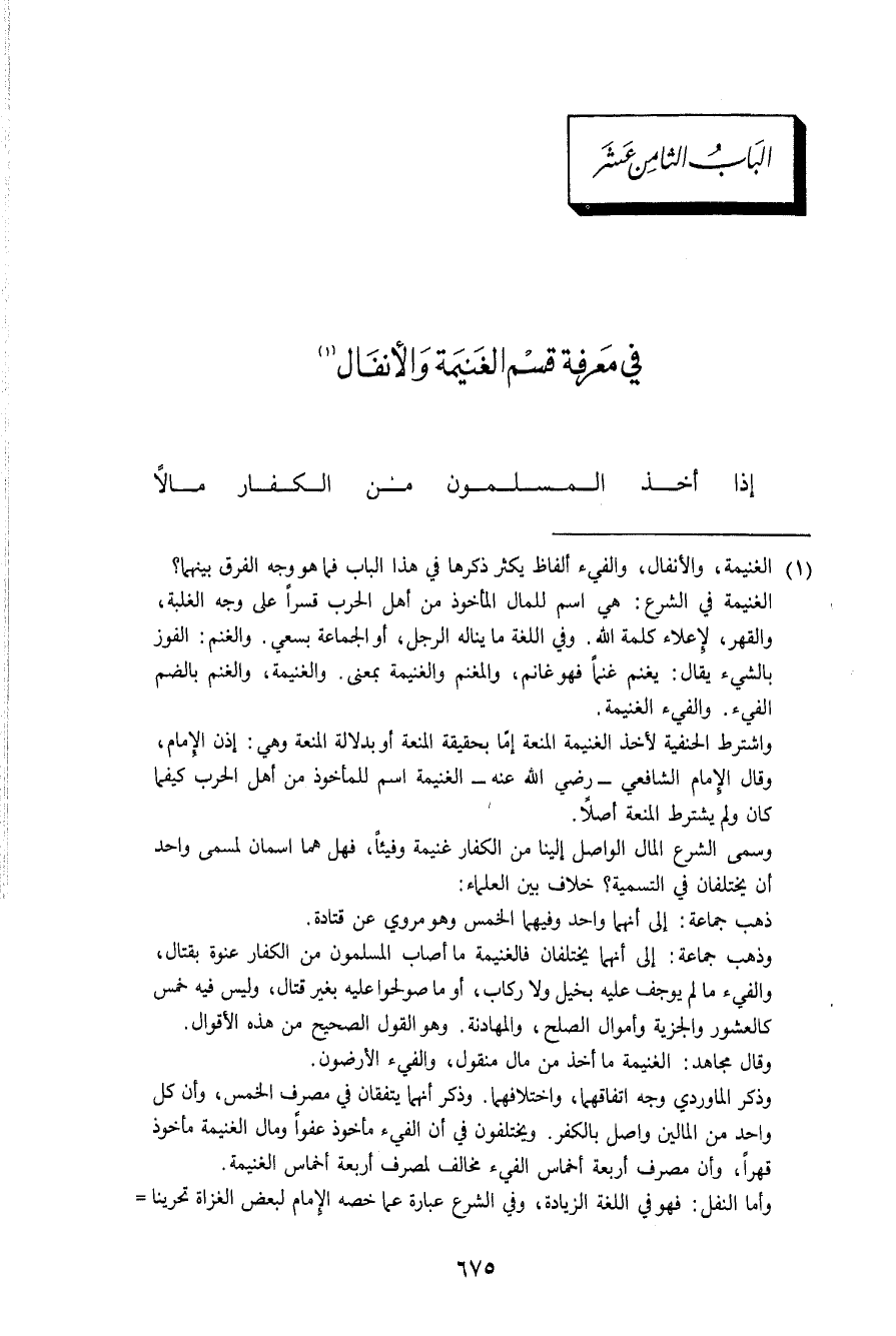 الْبَاب الثَّامِن عشر فِي معرفَة قسم الْغَنِيمَة والأنفال
