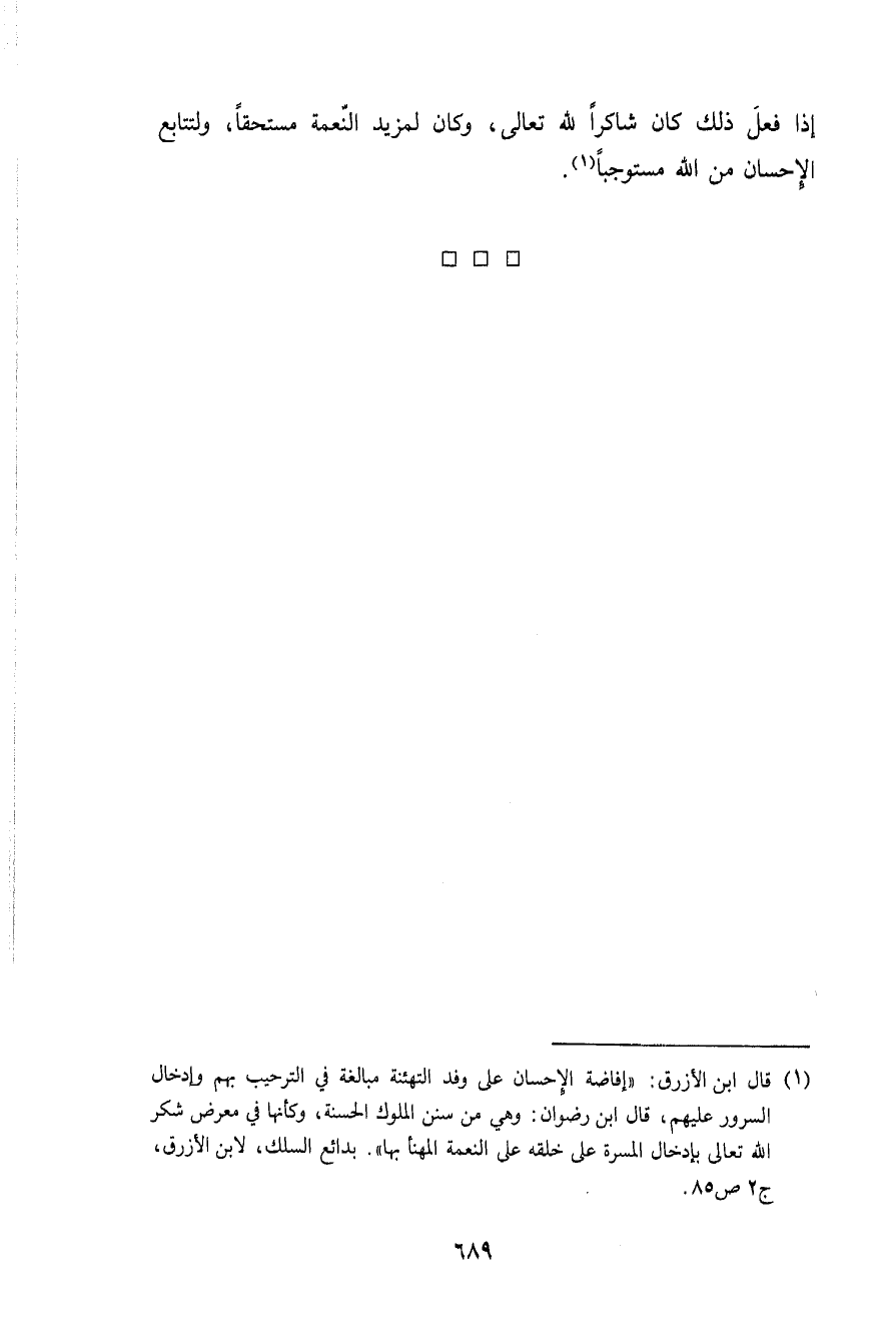إِذا فعل ذَلِك كَانَ شاكرا لله تَعَالَى وَكَانَ لمزيد النِّعْمَة مُسْتَحقّا ولتتابع الْإِحْسَان من الله مستوجبا