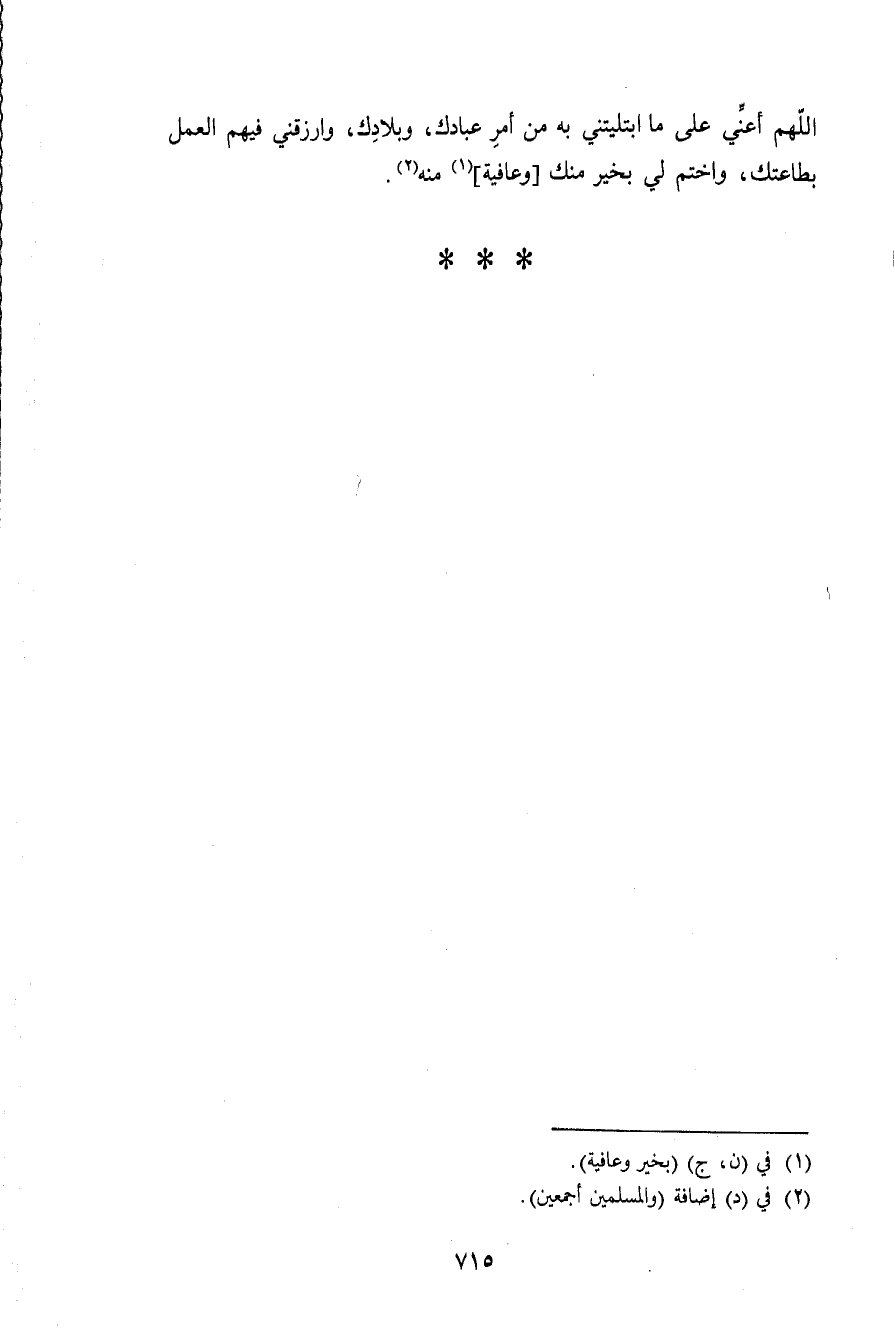 اللَّهُمَّ أَعنِي على مَا ابتليتني بِهِ من أَمر عِبَادك وبلادك وارزقني فيهم الْعَمَل بطاعتك وَاخْتِمْ لي بِخَير مِنْك وعافية مِنْهُ
