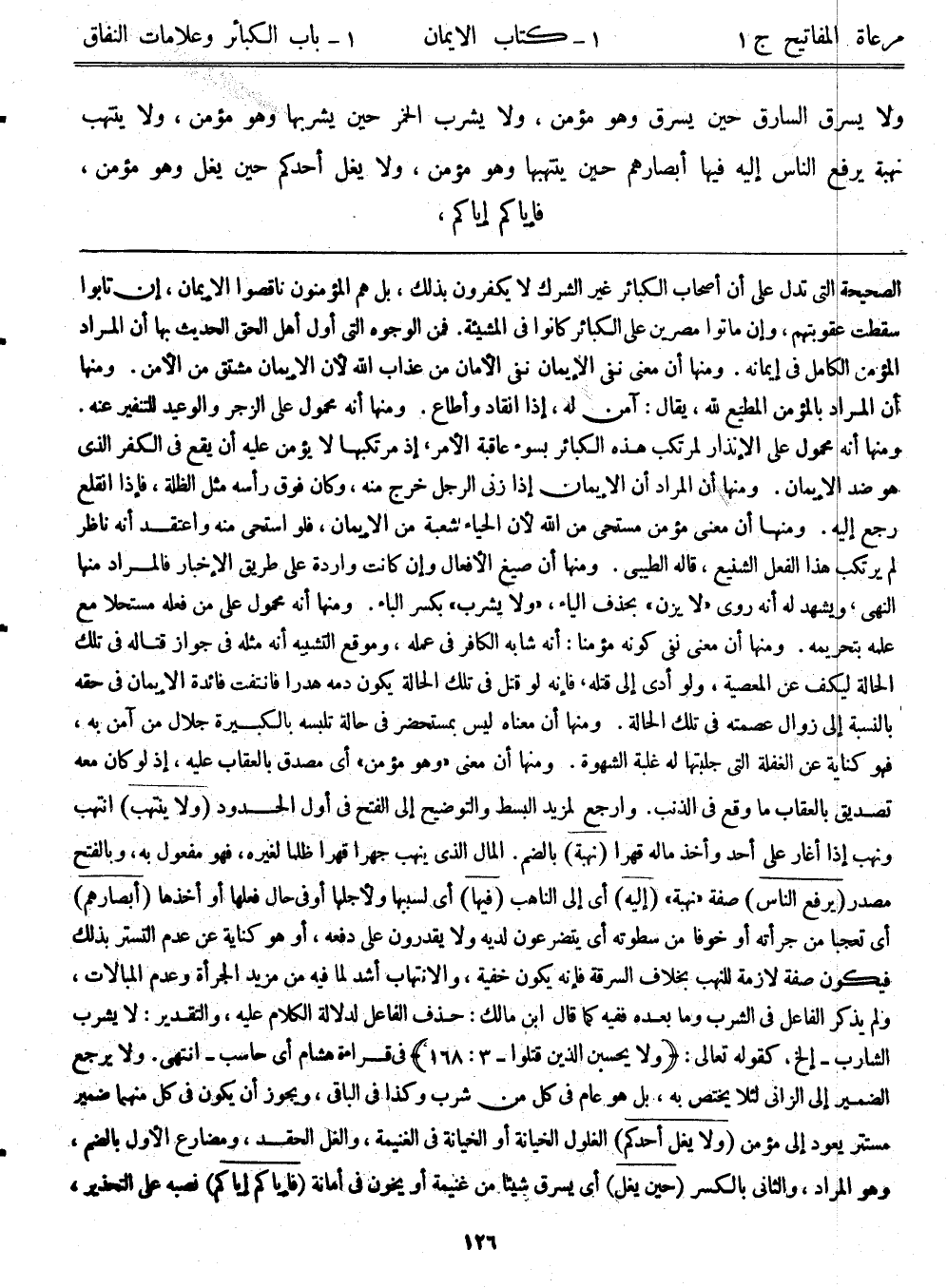 ولا يسرق السارق حين يسرق وهو مؤمن، ولا يشرب الخمر حين يشربها وهو مؤمن، ولا ينتهب نهبة يرفع الناس إليه فيها أبصارهم حين ينتهبها وهو مؤمن، ولا يغل أحدكم حين يغل وهو مؤمن، فإياكم وإياكم)) ،