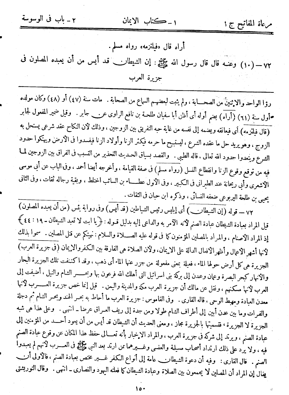 72- (10) وعنه قال: قال رسول الله - صلى الله عليه وسلم -: ((إن الشيطان قد أيس من أن يعبده المصلون في جزية العرب