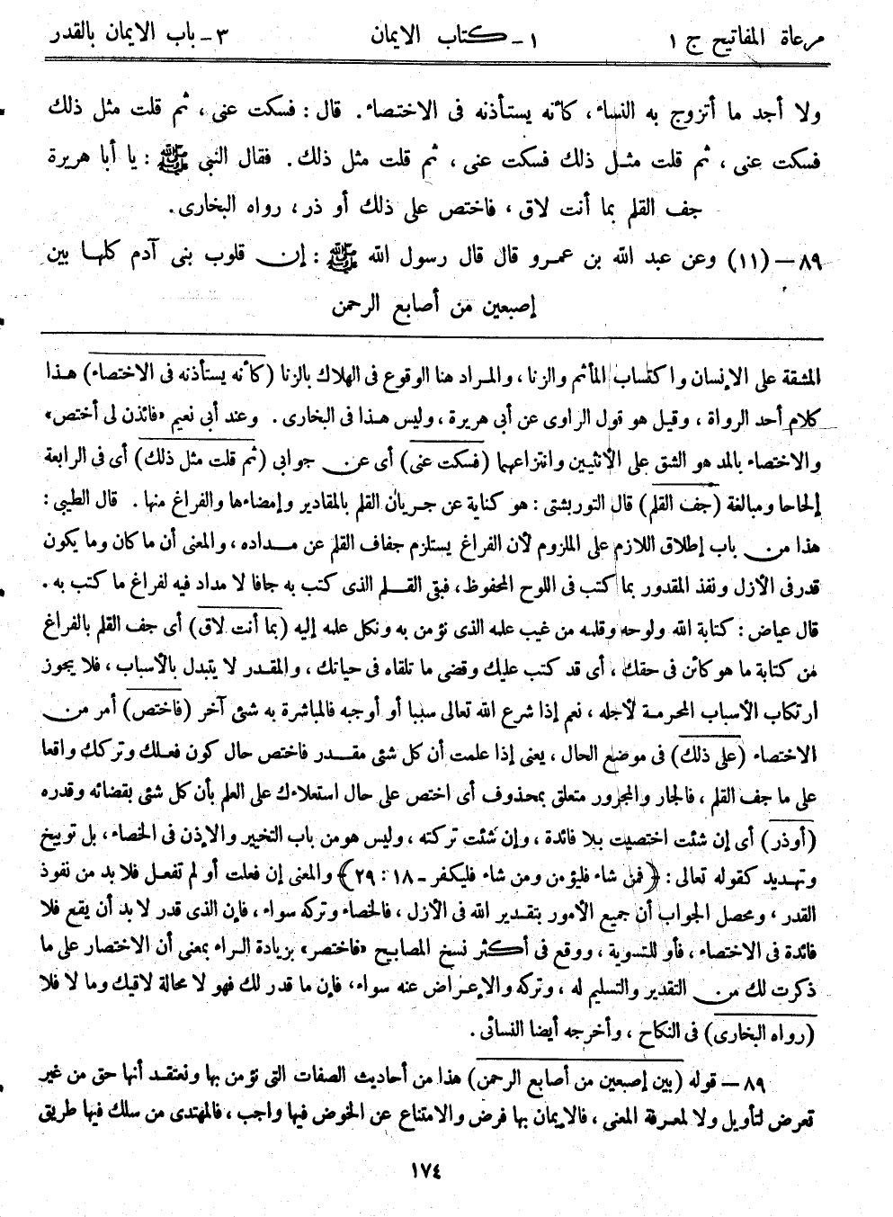 89- (11) وعن عبد الله بن عمرو قال: قال رسول الله - صلى الله عليه وسلم -: ((إن قلوب بني آدم كلها بين إصبعين من أصابع الرحمن