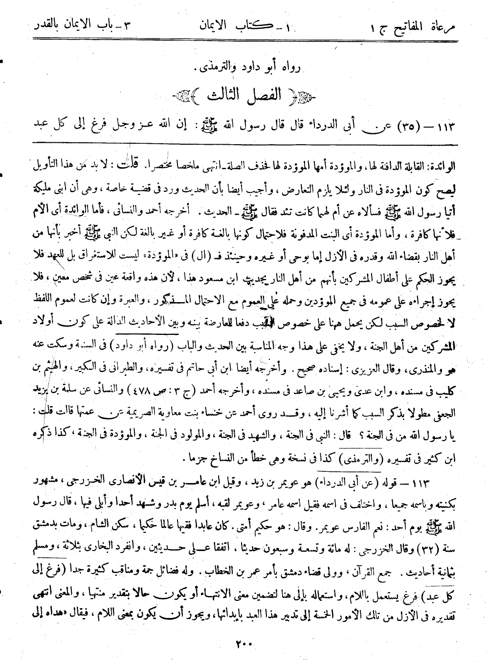 113- (35) عن أبي الدرداء قال: قال رسول الله - صلى الله عليه وسلم -: ((إن الله عزوجل فرغ إلى كل عبد