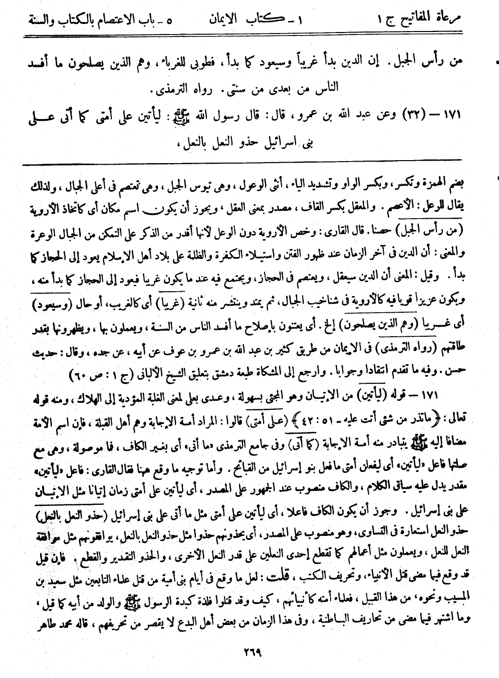 171- وعن عبد الله بن عمرو قال: قال رسول الله - صلى الله عليه وسلم -: ((ليأتين على أمتي كما أتى على بني إسرائيل حذو النعل بالنعل،