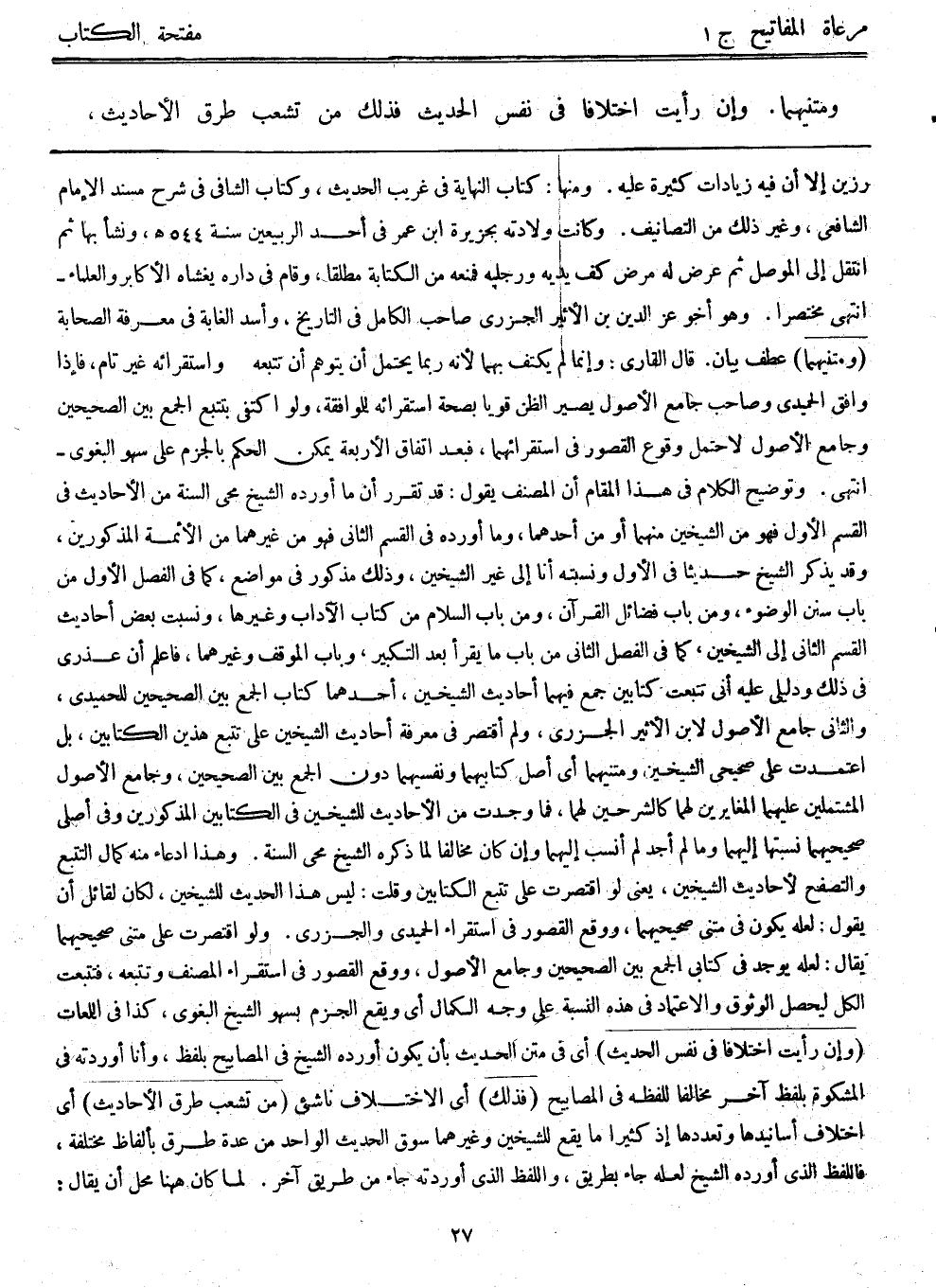 كتاب مرعاة المفاتيح شرح مشكاة المصابيح (اسم الجزء: 1)