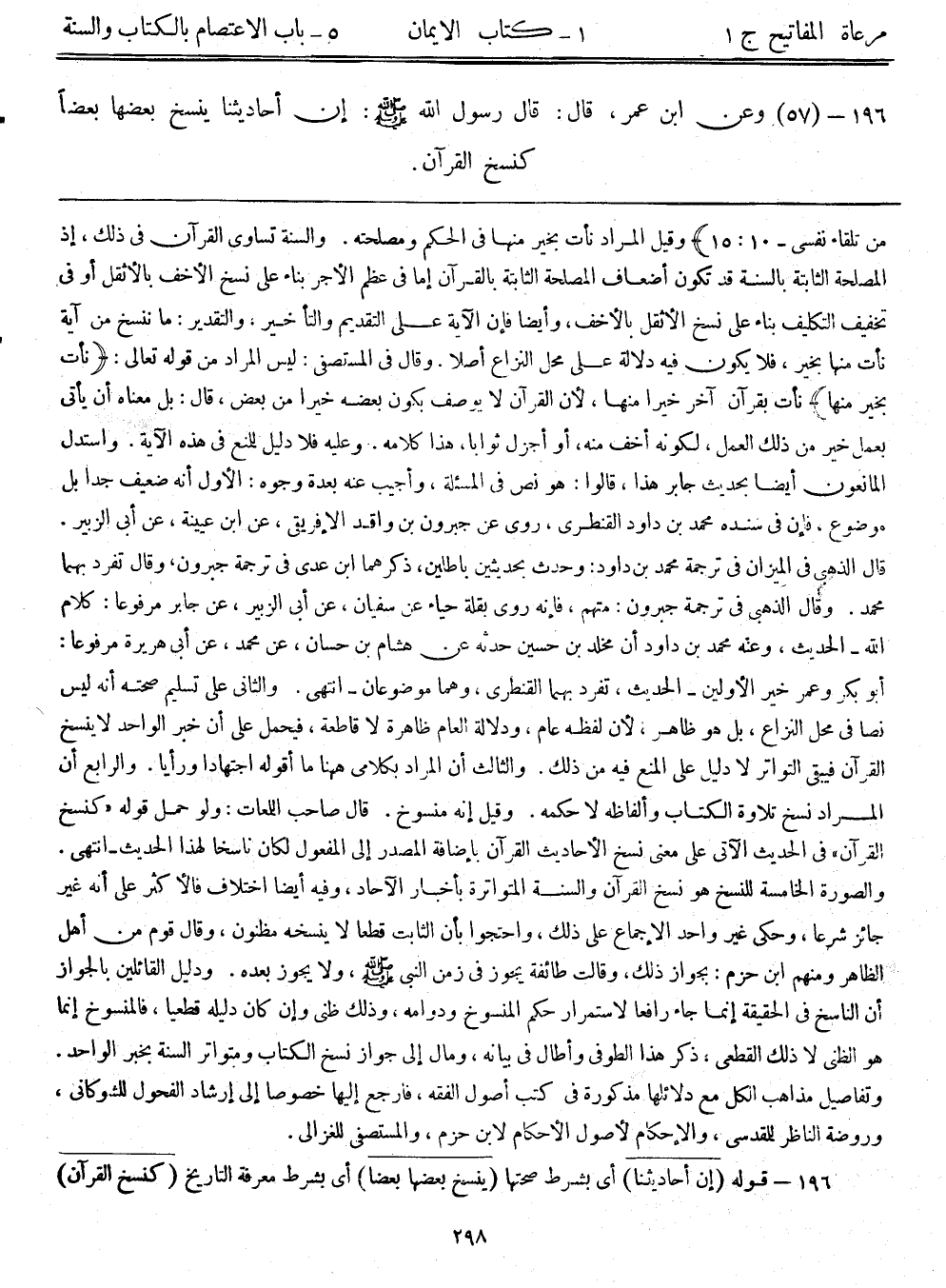 196- (57) وعن ابن عمر قال: قال رسول الله - صلى الله عليه وسلم -: ((إن أحاديثنا ينسخ بعضها بعضاً كنسخ القرآن)) .