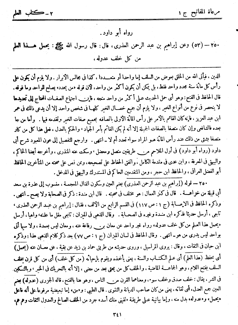 250- (53) وعن إبراهيم بن عبد الرحمن العذري قال: قال رسول الله - صلى الله عليه وسلم -: ((يحمل هذا العلم من كل خلف عدوله،