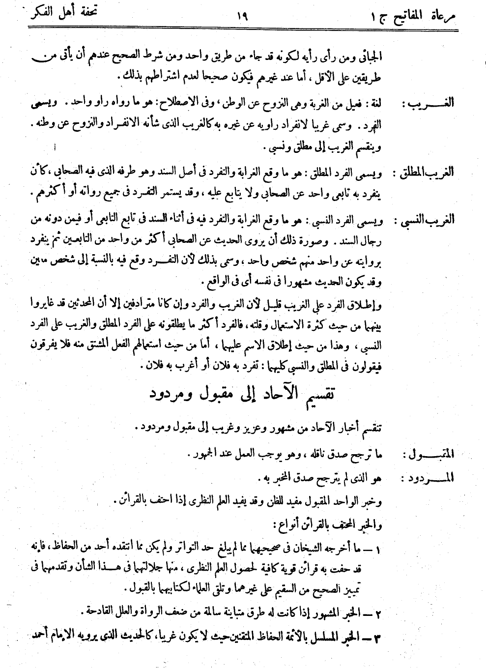 تنقسم أخبار الآحاد من مشهور وعزيز وغريب إلى مقبول ومردود.