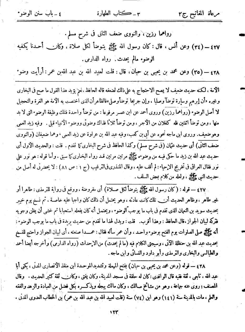428- (35) وعن محمد بن يحيى بن حبان، قال: قلت لعبيد الله بن عبد الله بن عمر: ((أرأيت وضوء