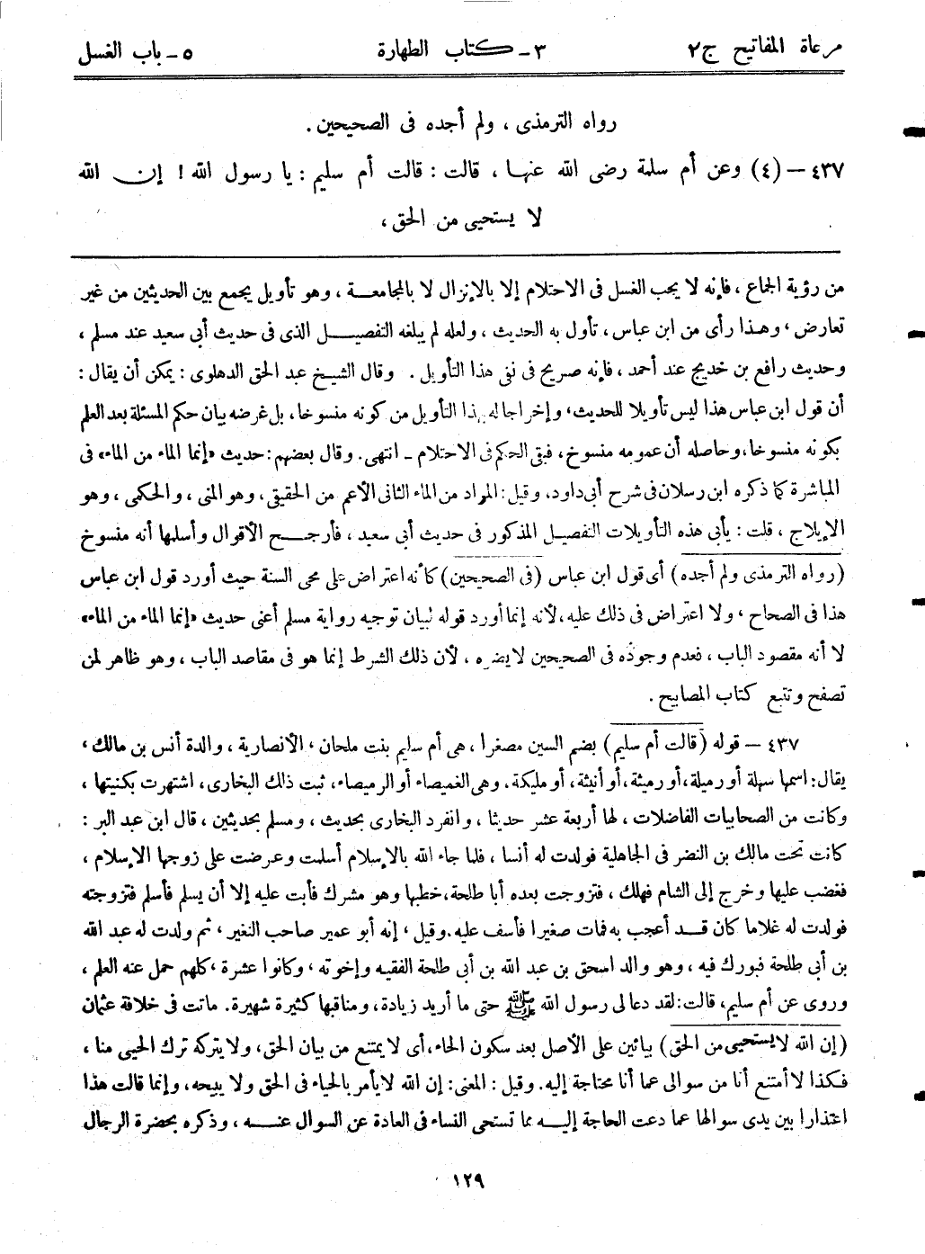 437- (4) وعن أم سلمة رضي الله عنها، قالت: ((قالت أم سليم: يا رسول الله - صلى الله عليه وسلم -! إن الله لا يستحي من الحق،