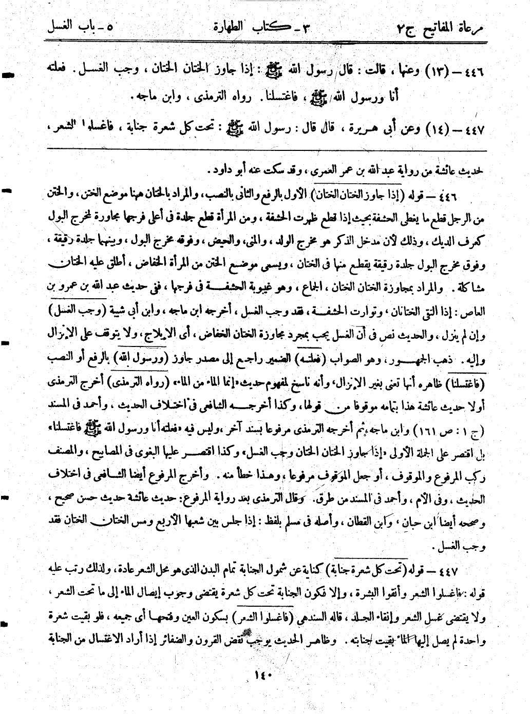 446- (13) وعنها، قالت: قال رسول الله - صلى الله عليه وسلم -: ((إذا جاوز الختان الختان، وجب الغسل. فعلته أنا ورسول الله - صلى الله عليه وسلم -، فاغتسلنا)) . رواه الترمذي،وابن ماجه.