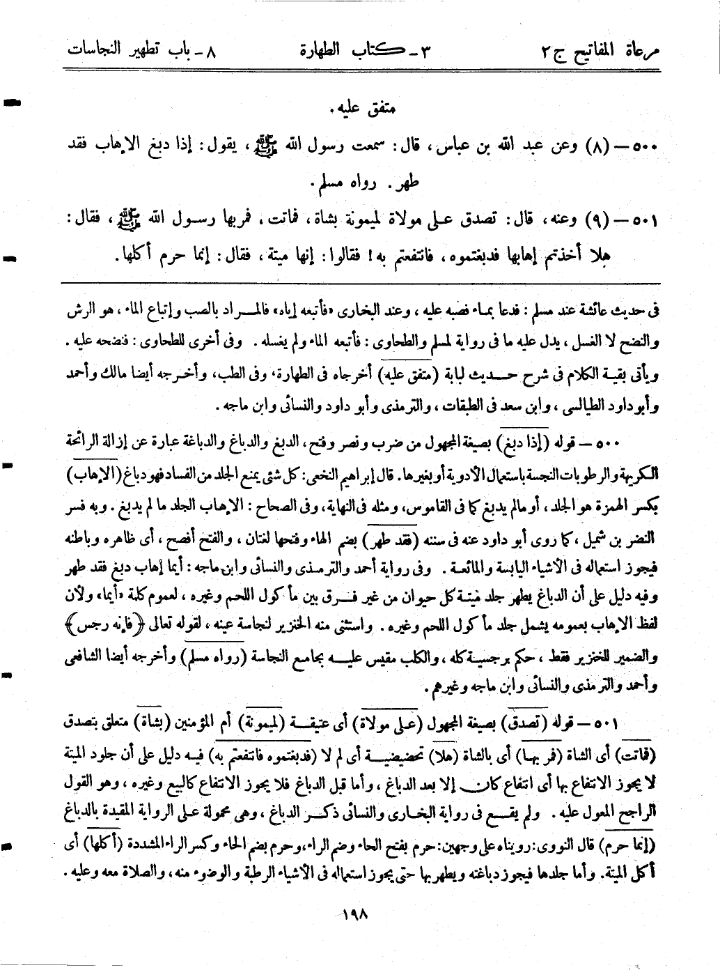 500- (8) وعن عبد الله بن عباس، قال: سمعت رسول الله - صلى الله عليه وسلم - يقول: ((إذا دبغ الإهاب فقد طهر)) . رواه مسلم.