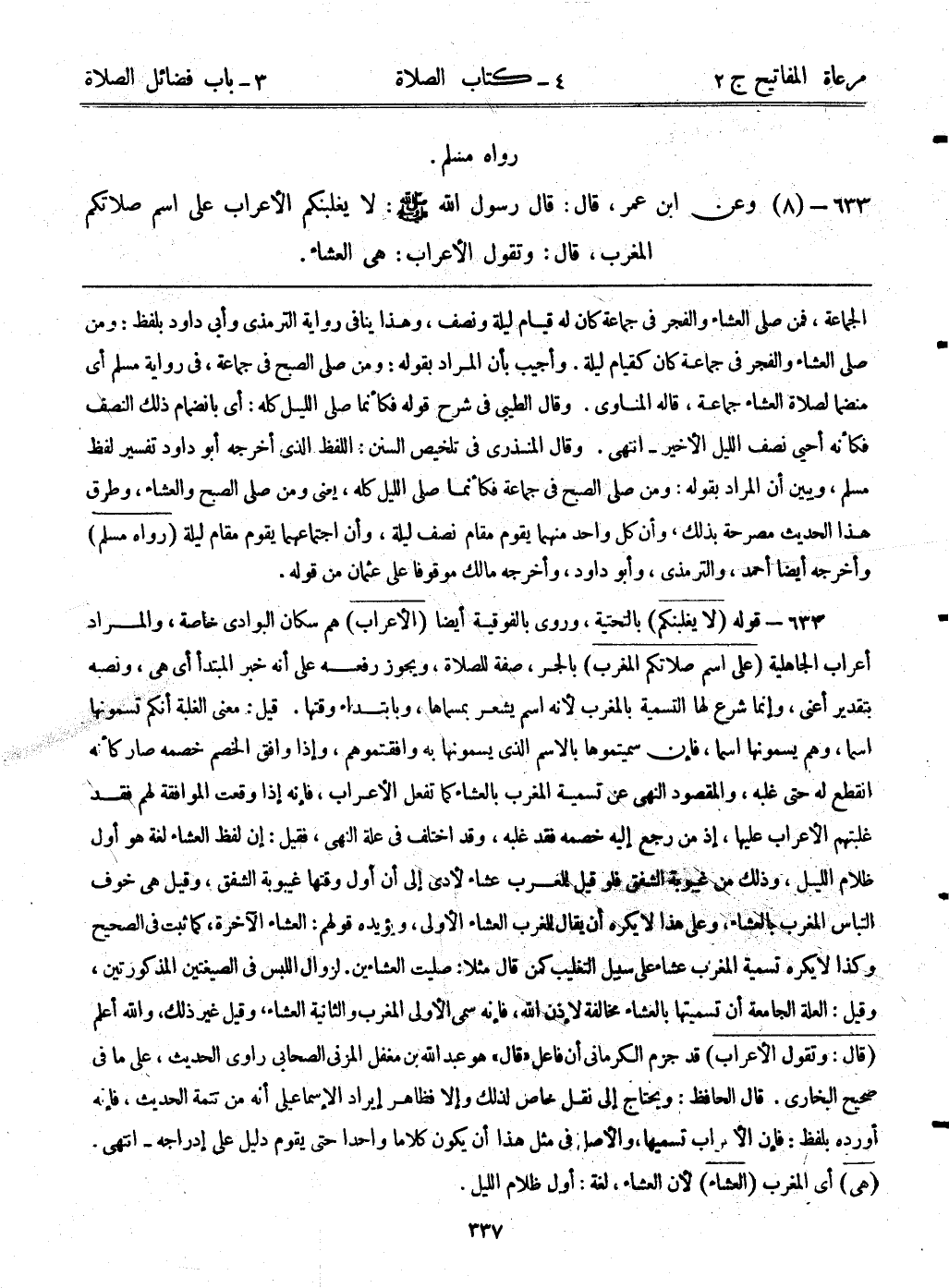 633- (8) وعن ابن عمر، قال: قال رسول الله - صلى الله عليه وسلم -: ((لا يغلبنكم الأعراب على اسم صلاتكم