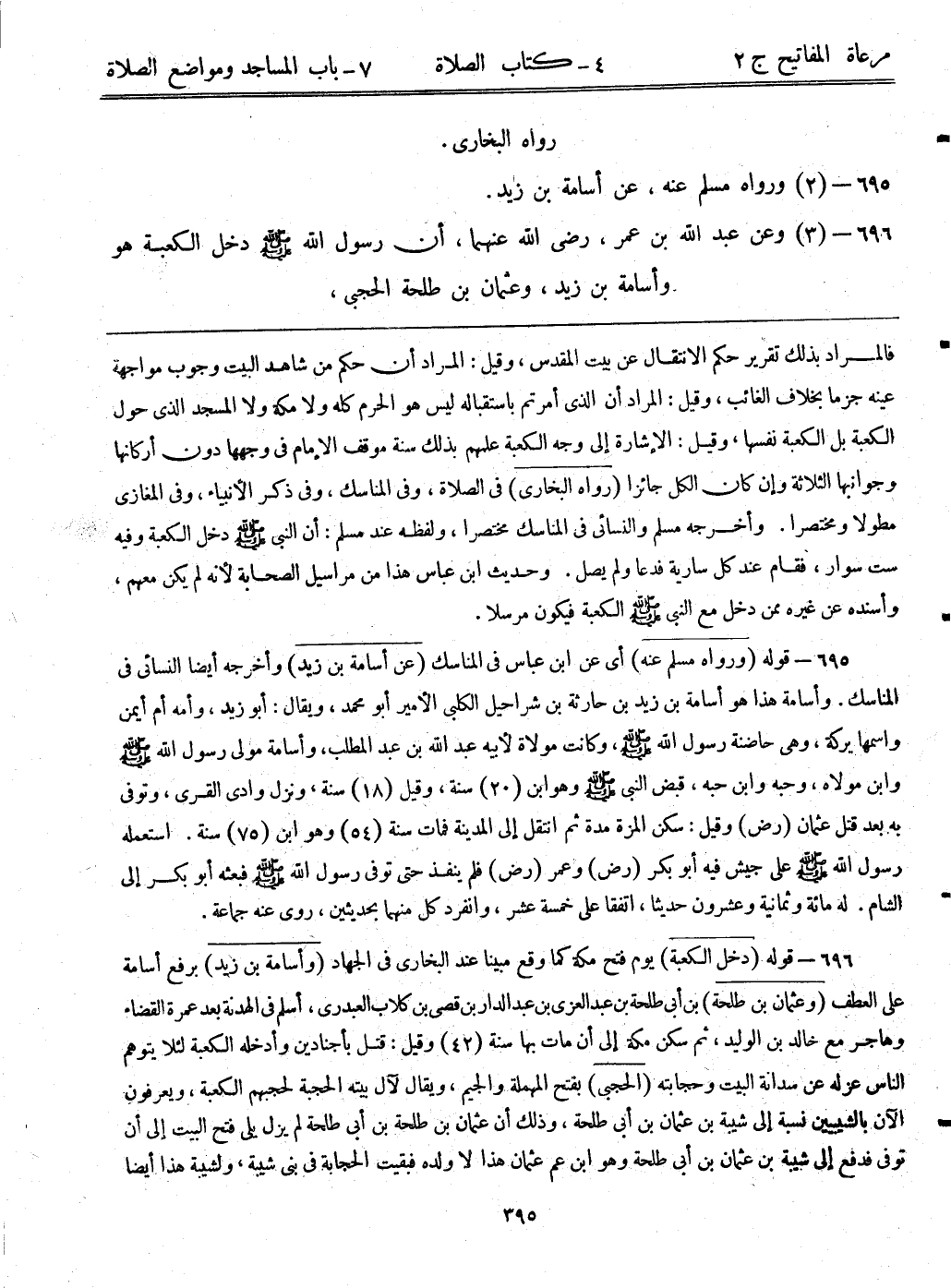 696- (3) وعن عبد الله بن عمر، رضي الله عنهما، ((أن رسول الله - صلى الله عليه وسلم - دخل الكعبة هو وأسامة بن