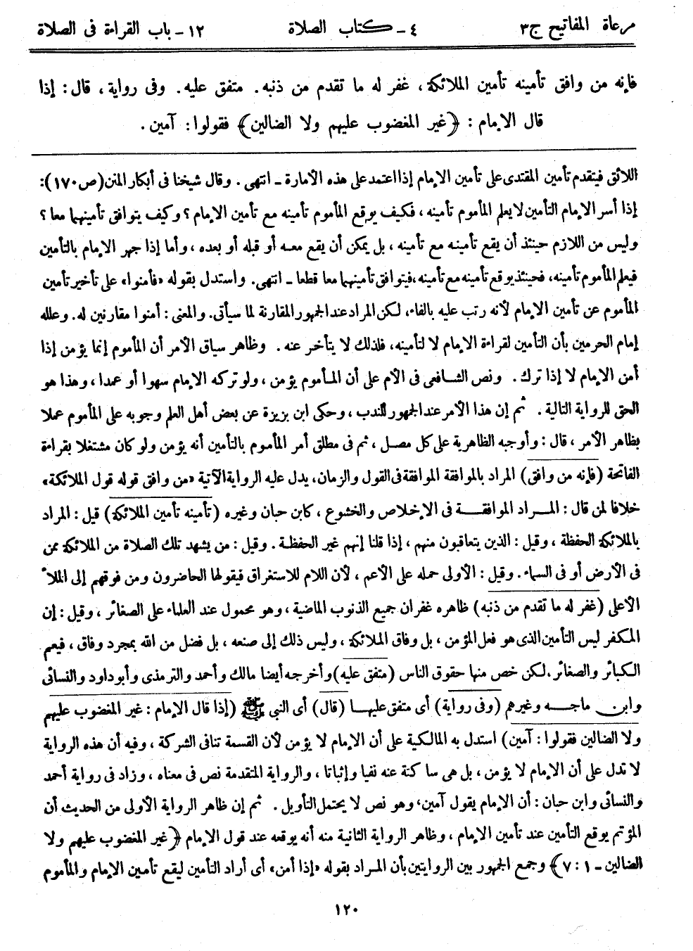 فإنه من وافق تأمينه تأمين الملائكة، غفر له ما تقدم من ذنبه)) متفق عليه. وفي رواية، قال: ((إذا قال الإمام {غير المغضوب عليهم ولا الضالين} فقولوا: آمين.
