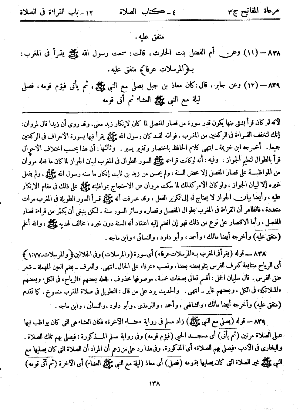 839- (12) وعن جابر، قال: ((كان معاذ بن جبل يصلي مع النبي - صلى الله عليه وسلم -، ثم يأتي فيؤم قومه، فصلى