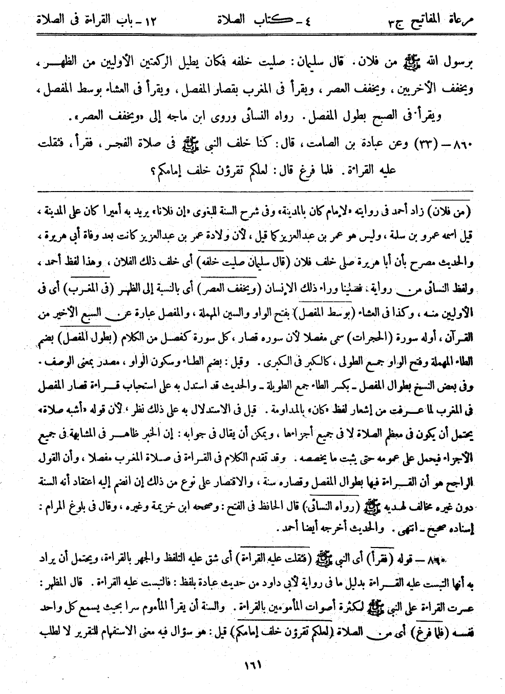860- (33) وعن عبادة بن الصامت، قال: ((كنا خلف النبي - صلى الله عليه وسلم - في صلاة الفجر، فقرأ، فثقلت عليه القراءة. فلما فرغ قال: لعلكم تقرءون خلف إمامكم.