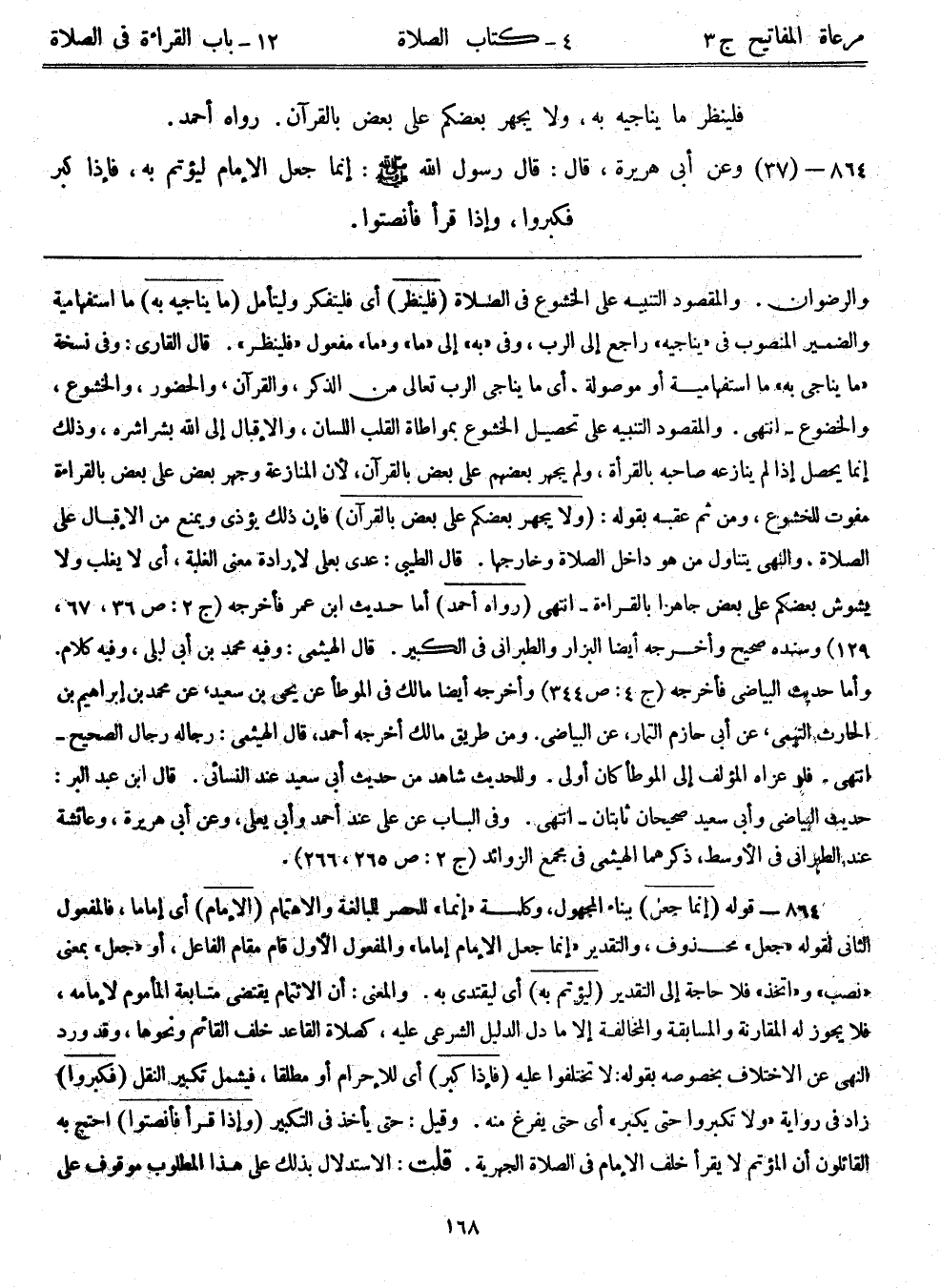 864- (37) وعن أبي هريرة قال: ((قال رسول الله - صلى الله عليه وسلم -: إنما جعل الإمام ليؤتم به، فإذا كبر فكبروا، وإذا قرأ فأنصتوا) .