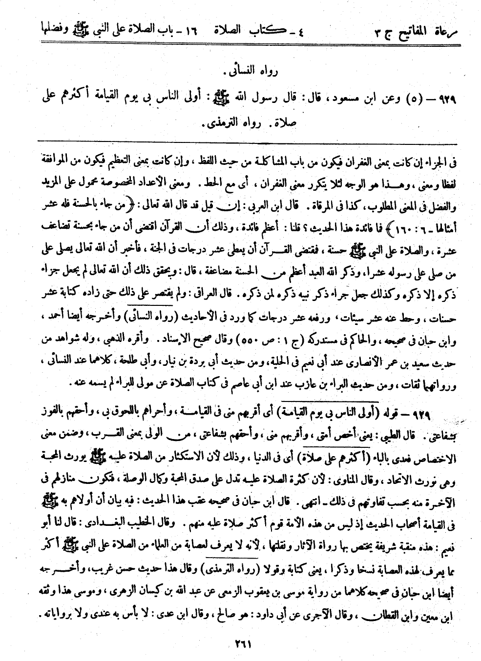 929- (5) وعن ابن مسعود، قال: قال رسول الله - صلى الله عليه وسلم -: ((أولى الناس بي يوم القيامة أكثرهم علي صلاة)) . رواه الترمذي.