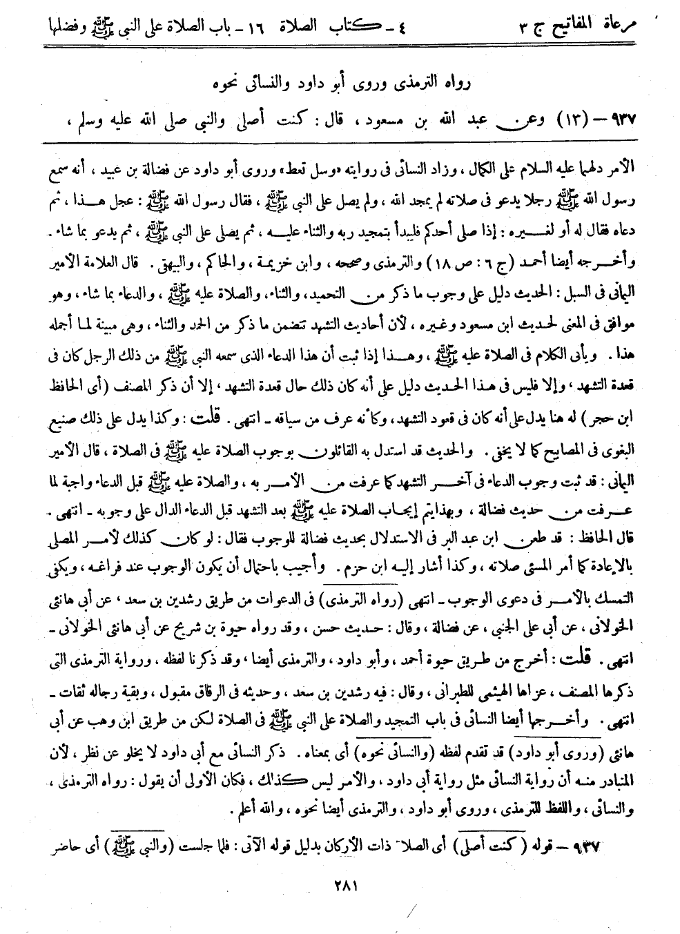 937- (13) وعن عبد الله بن مسعود، قال: ((كنت أصلي والنبي صلى الله عليه وسلم،