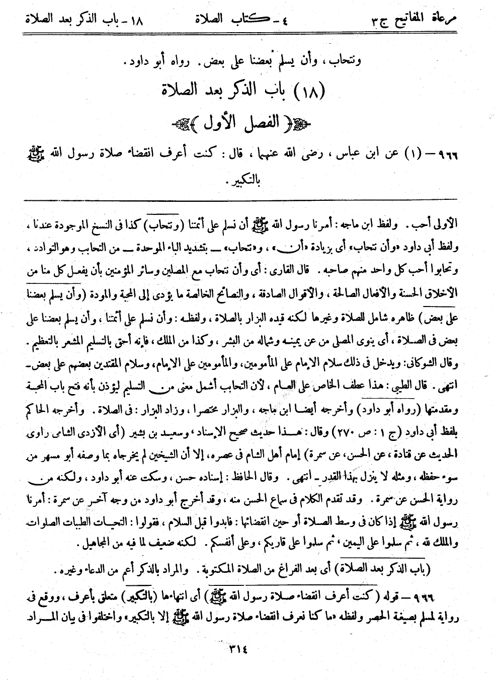 966- (1) عن ابن عباس، رضي الله عنهما، قال: ((كنت أعرف انقضاء صلاة رسول الله - صلى الله عليه وسلم - بالتكبير