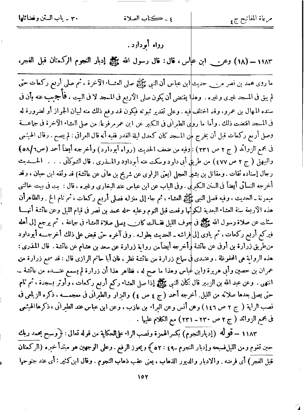 1183- (18) وعن ابن عباس، قال: قال رسول الله - صلى الله عليه وسلم -: ((إدبار النجوم الركعتان قبل الفجر،